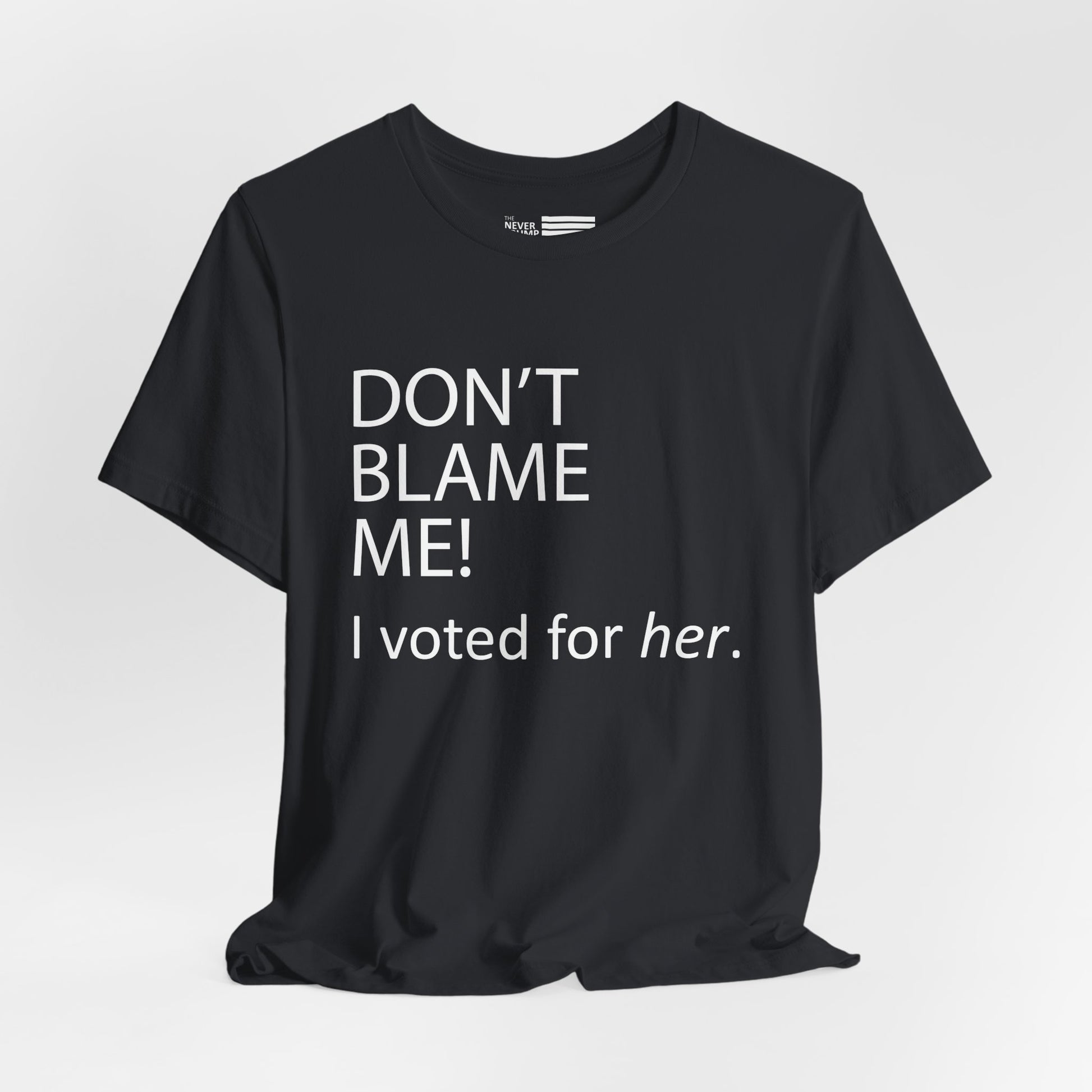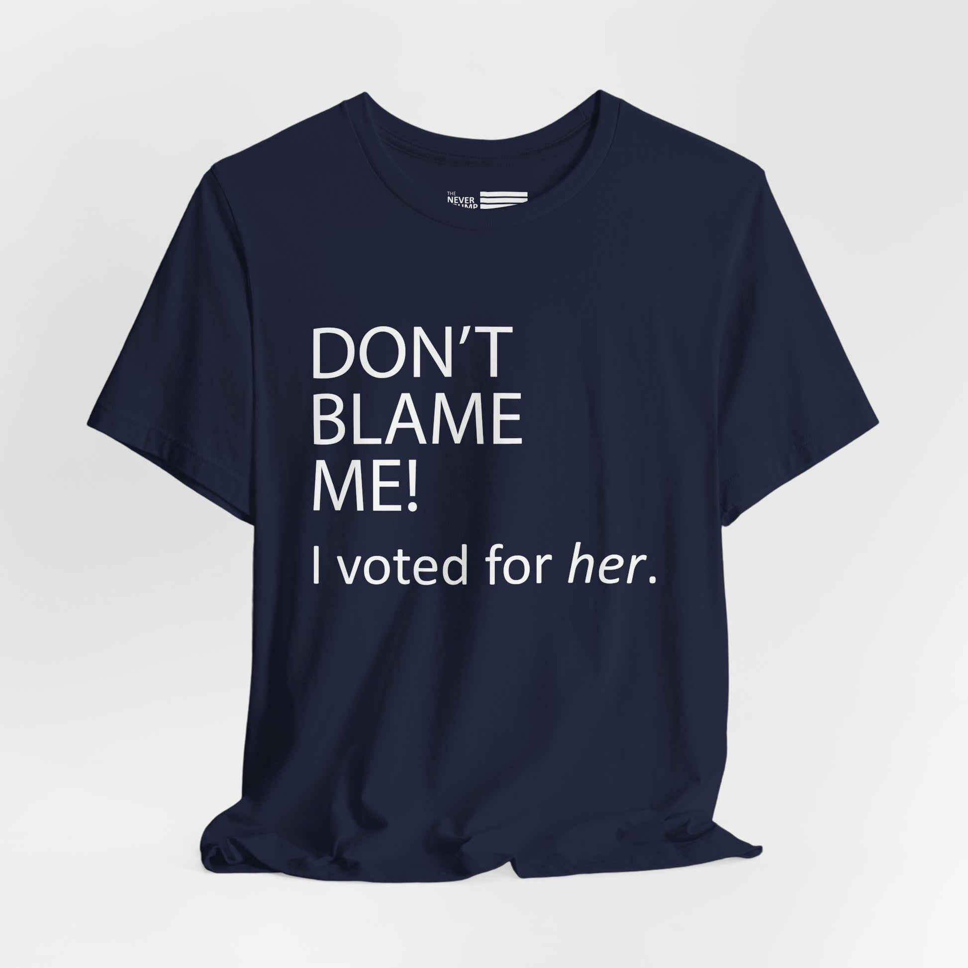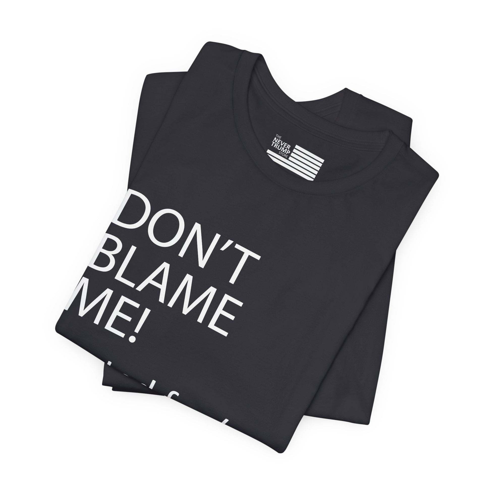 Make a bold statement with our "Don't Blame Me!" t-shirt. This classic unisex jersey short sleeve tee fits like a well-loved favorite, providing comfort and style for any occasion. Crafted from high-quality materials, this shirt is perfect for those who want to express their political views with confidence.